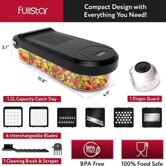 I’m not one for needless kitchen gadgets so I bought this after a lot of hesitation based on the recommendations of several “influencers†and I am very happy so far with it. It makes chopping and slicing vegetables so quick and easy – especially handy for onions which I find such a chore. The blades are very sharp but I like that it comes with a finger guard so I don’t have to wear a glove when I’m using it. Comes with tools to make cleaning easy.